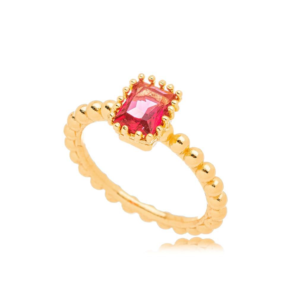 Anel Semijoia Priya em Cristal Rubelita retangular