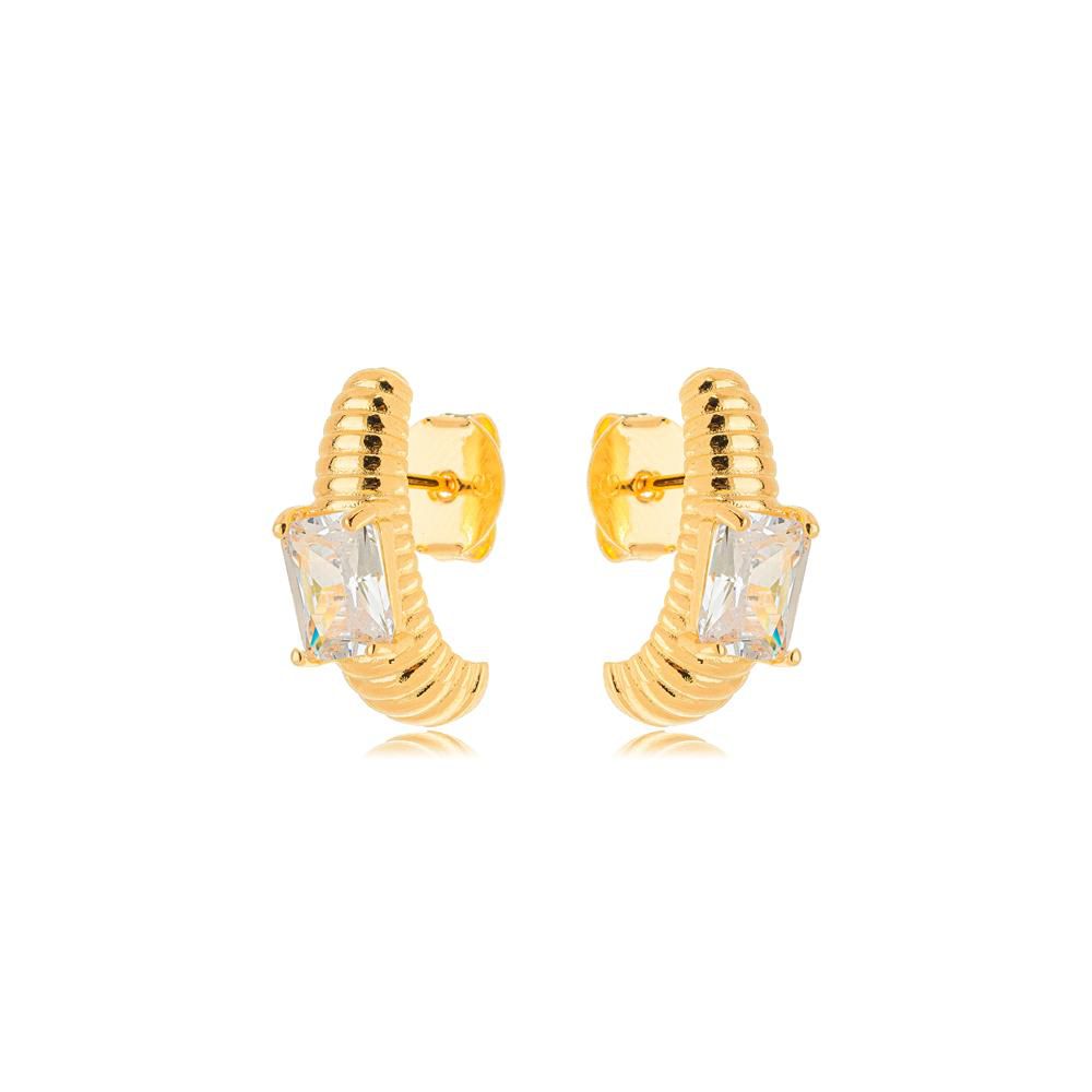 Brinco Semijoia Priya Ear Hook com textura e Cristal.