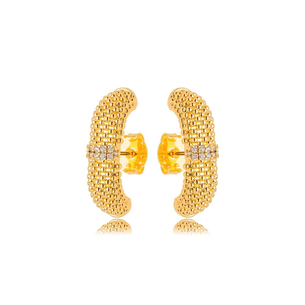 Brinco Semijoia Priya Ear Hook todo texturizado e cravejado com micro zircônias