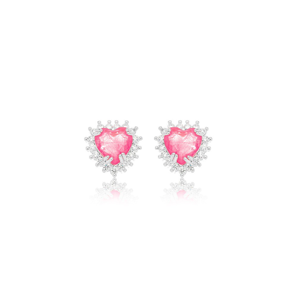 Brinco Quartzo Coração Ródio